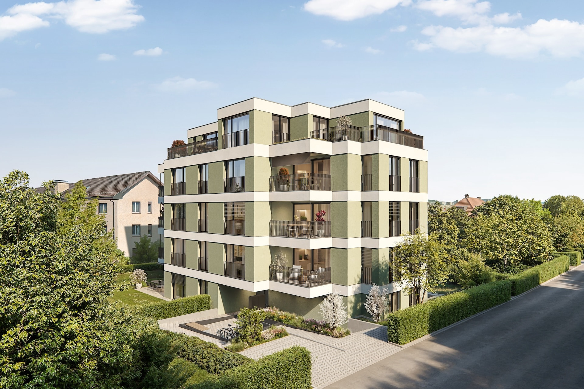 Der Name Ihres neuen Zuhauses hat seinen Ursprung im japanischen Wort für «Zukunft» – eine Bedeutung, die dieses Projekt in besonderer Weise widerspiegelt. «MIRAI» umfasst auf fünf Etagen moderne 2.5- bis 4.5-Zimmer-Wohnungen. Das Gebäude wird im Minergie-Standard realisiert und ist mit einer nachhaltigen Erdsonden-Wärmepumpe, inklusive Freecooling, sowie einer eigenen PV-Anlage ausgestattet. Sowohl der Neubau selbst als auch der Standort stehen für Entwicklung, Wandel und Fortschritt. Das aufstrebende Zürcher Stadtquartier Altstetten befindet sich in einem stetigen Aufschwung und verbindet urbanes Leben mit hoher Wohnqualität.